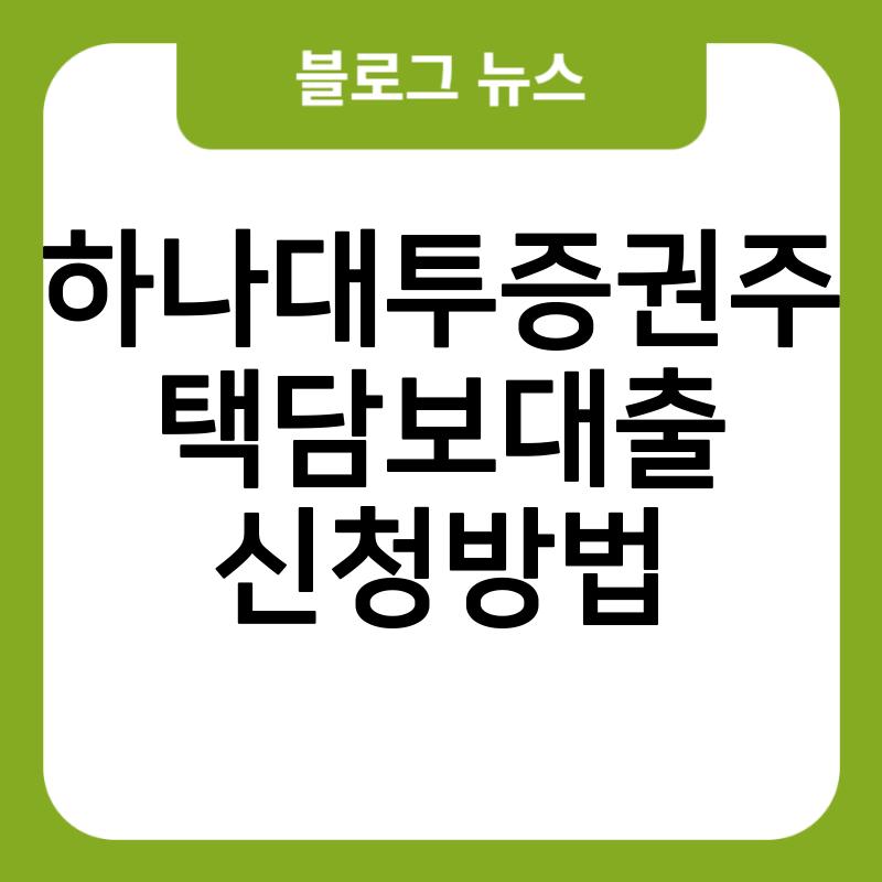 하나대투증권주택담보대출 신청방법
