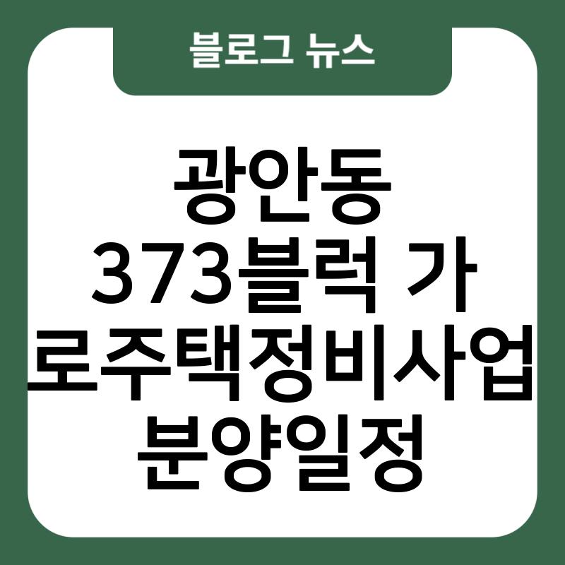 광안동 373블럭 가로주택정비사업 분양일정
