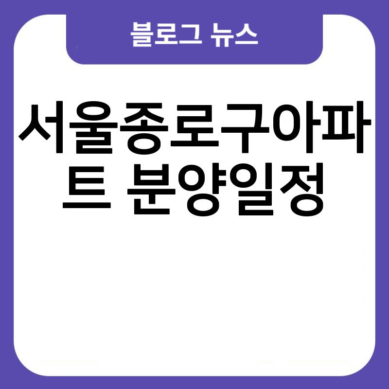 서울종로구아파트 분양일정