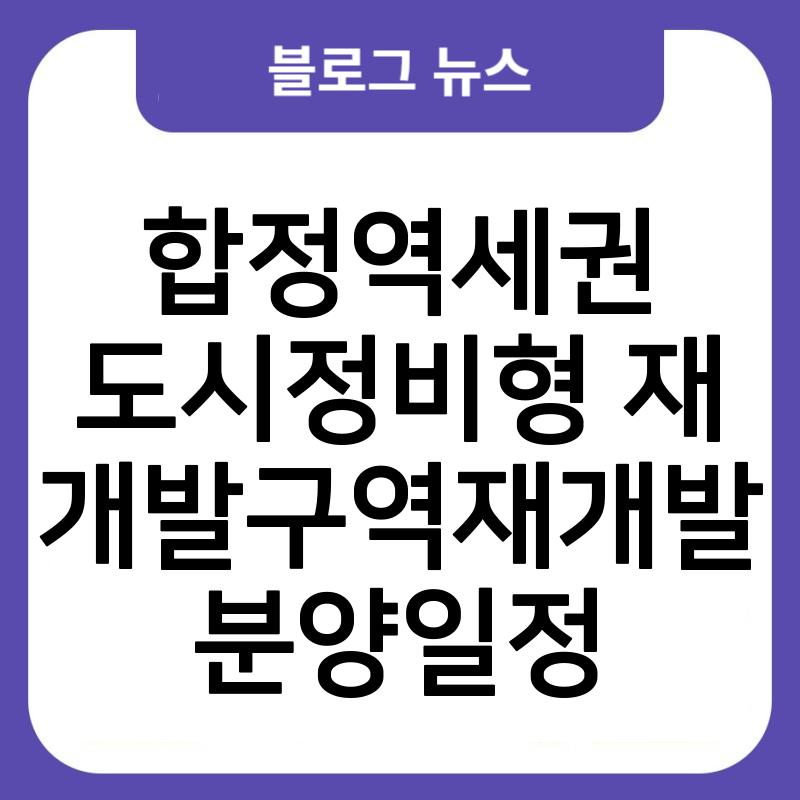 합정역세권 도시정비형 재개발구역재개발 분양일정